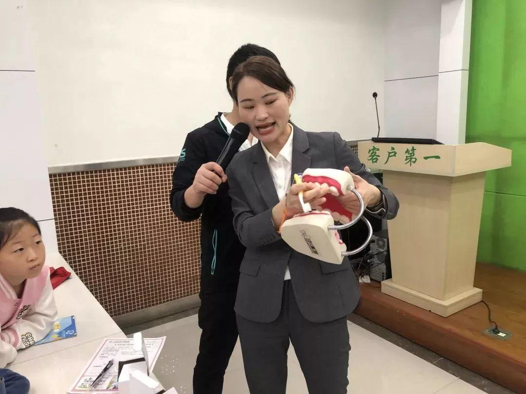 參觀結(jié)束后,小記者們來到位于醫(yī)院地下一樓的“三葉兒童口腔大講堂”,開展了一堂“兒童口腔小知識”的口腔科普宣教活動。通過專業(yè)老師的講解,小記者認識了乳牙、恒牙以及護牙的很多知識,還現(xiàn)場開展刷牙模擬演示。在提問互動環(huán)節(jié),小記者們積極舉手,踴躍搶答,答對者則獲得了杭州口腔醫(yī)院專門準備的一份小獎品,小記者們別提多開心啦!一些家長也全程陪同參與,一起學習努力成為孩子的牙齒管家。