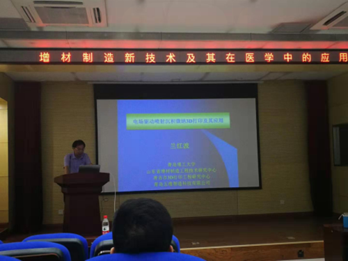 蘭紅波做出題目為“電場驅(qū)動噴射沉積微納3D打印及應用”的講座,詳細介紹了微納3D打印的發(fā)展背景及進展,展示了微納3D打印技術(shù)的應用領域。其中,微納3D打印技術(shù)在生物醫(yī)學方面的應用引起了在座臨床醫(yī)生及科研工作者的極大興趣,并針對臨床尿道狹窄疾病、平衡講解速度與新組織形成速度、功能梯度材料應用及動物實驗檢驗等方面的問題進行了深入探討。
