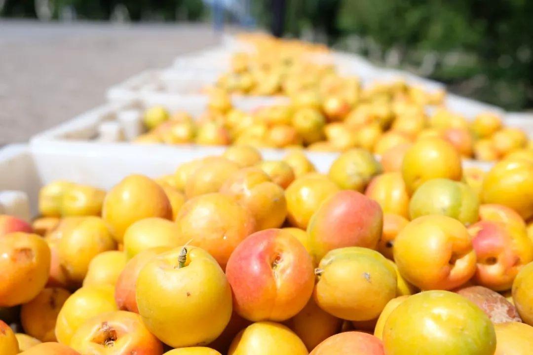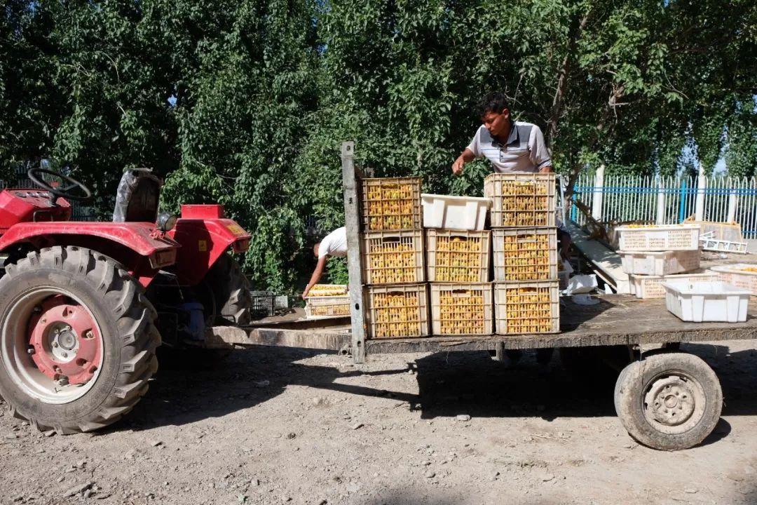 運(yùn)輸鏈路的“保鮮戰(zhàn)”今年采摘季,在尤喀克臺(tái)賽克村合作社里,每天都有數(shù)十位村民在現(xiàn)場(chǎng)分揀和搬運(yùn)杏子,從早上7點(diǎn)勞作至凌晨1點(diǎn)半,以當(dāng)日摘下的杏子可以在當(dāng)天就全部分類裝車,運(yùn)送到供銷社和客商手中。