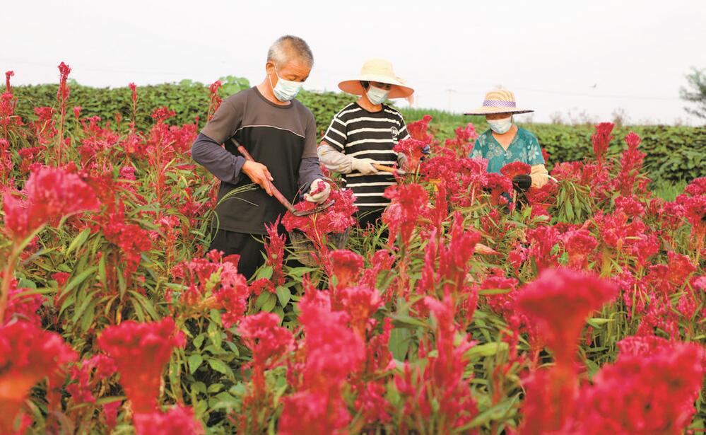 8月9日,在石家莊市趙縣韓村鎮(zhèn)何家莊中藥材種植基地,種植戶正在采收藥用雞冠花。該鎮(zhèn)以何家莊為中心,依托河北益晟康中藥材市場(chǎng)管理有限公司,采用“公司+合作社+農(nóng)戶”的模式,帶動(dòng)400多戶農(nóng)民發(fā)展中藥材種植,建成牛膝、板藍(lán)根、半夏、藥用雞冠花等中藥材種植基地1000畝,幫助種植戶每年增收700多萬(wàn)元。記者張震 通訊員朱濤攝影報(bào)道