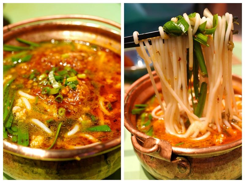 傳統(tǒng)的小鍋米線,選了傣族特色的酸辣醬肉澆頭,碎碎的肉醬溢出厚厚一層油脂,封住了滾燙的米線,撩下面還有韭菜,絲毫不辛,香嫩得很……