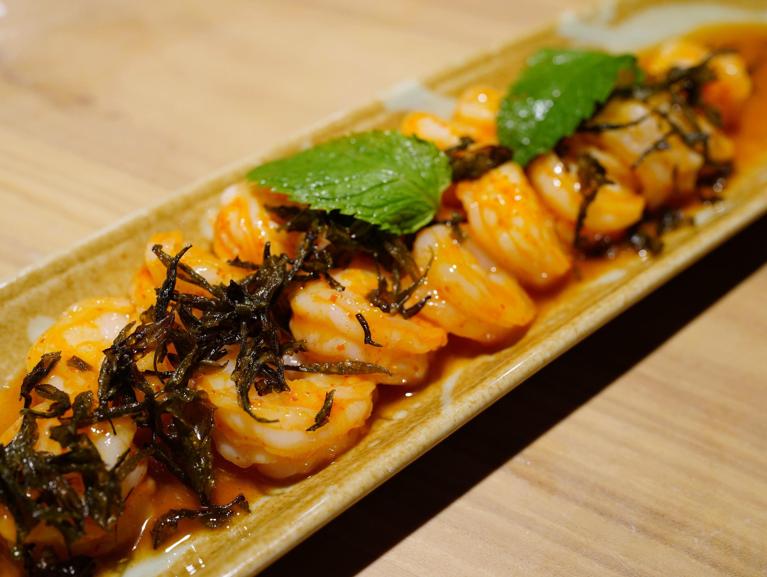 傣族酸湯蝦,有類似樹番茄的酸度,樹番茄是云南特產(chǎn),帶有熱帶果實(shí)的滋味,想起了早年去瑞麗旅行,還不認(rèn)識(shí)樹番茄,從竹籃子里拿了兩個(gè)送進(jìn)廚房,請(qǐng)師傅炒給我吃……瑞麗到現(xiàn)在還封著,這一段故事我回頭寫。