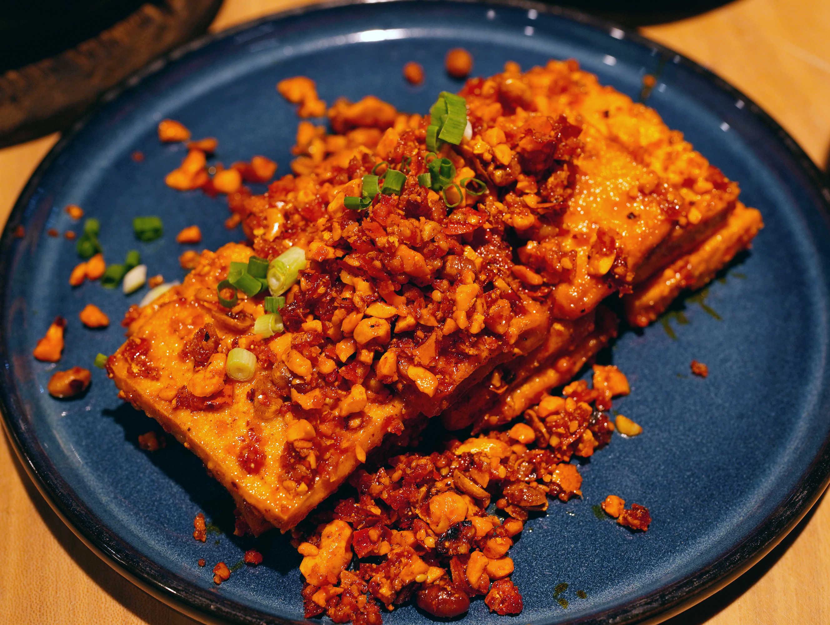 來自石屏的包漿豆腐,微微發(fā)酵,表皮軟,芯子嫩,特別喜歡它的澆頭,香噴噴的花生黃豆干辣椒,我都舍不得服務(wù)員收盤子,留著下酒。