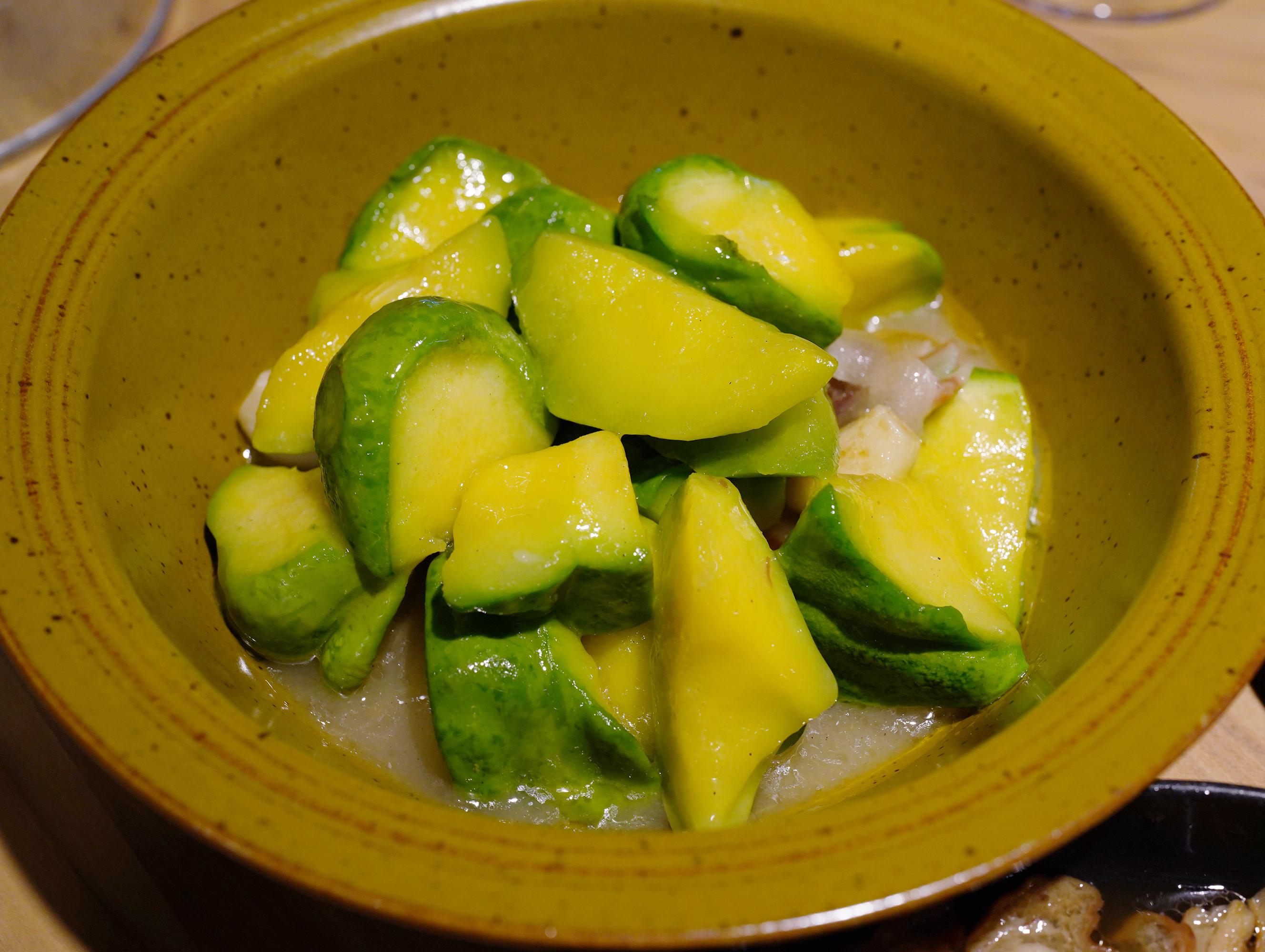 想吃云南的豌豆尖,可惜當(dāng)晚沽清了,于是改成姜柄瓜,小悠悠的綠南瓜,燜得酥嫩又清新。