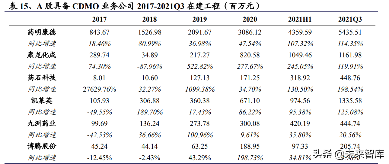 CXO 行業(yè)景氣度的重要前瞻性指標(biāo)?;仡?2021 年 前三季度,Q1 單季 度,海外和國(guó)內(nèi)均創(chuàng)單季度新高,市場(chǎng)同比增速超過(guò) 、國(guó)內(nèi)市場(chǎng)同比增 速超過(guò) 200%;Q2 單季度,雖然國(guó)內(nèi)熱度略有下降,但整體仍呈現(xiàn)快速增長(zhǎng)態(tài)勢(shì), 市場(chǎng)增速為 96%、國(guó)內(nèi)市場(chǎng)增速為 39%;Q3 單季度,雖然和國(guó)內(nèi)投融 資數(shù)據(jù)有所放緩,但同比增速依然可觀,同比增速 38%;國(guó)內(nèi)同比增速 58%。