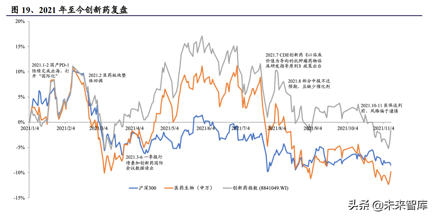 通過(guò)對(duì) 2021 年的復(fù)盤,我們可以看到,國(guó)際化成為股價(jià)催化的關(guān)鍵因素,而政策、 醫(yī)藥板塊整體的走勢(shì)、重要公司的業(yè)績(jī)情況則會(huì)對(duì)創(chuàng)新藥板塊整體的股價(jià)表現(xiàn)產(chǎn) 生直接影響。隨著國(guó)內(nèi)創(chuàng)新藥企競(jìng)爭(zhēng)的逐漸激烈以及相關(guān)國(guó)內(nèi)政策形勢(shì)的變化, 國(guó)內(nèi)創(chuàng)新藥板塊景氣度的衡量標(biāo)準(zhǔn)也在逐漸變化,國(guó)際化和差異化有望成為推動(dòng) 板塊發(fā)展的關(guān)鍵因素。