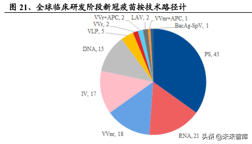 新冠疫苗的緊急使用打破這一桎梏。面對(duì)新冠疫情肆虐,諸多新技術(shù)的臨床 應(yīng)用得到突破性進(jìn)展,包括廣受關(guān)注的核酸疫苗平臺(tái)、病毒載體疫苗平臺(tái)、重組 蛋白疫苗平臺(tái),也包括新的佐劑等。與此同時(shí),國(guó)內(nèi)外企業(yè)也加大了對(duì)新技術(shù)平 臺(tái)的探索與布局,并延展至其他非新冠疫苗。根據(jù) WHO 統(tǒng)計(jì)數(shù)據(jù),截至 2021 年 11 月 5 日,共有 194 款新冠疫苗處于臨床前研究階段,129 款處于臨床研究 階段,臨床研究階段中的 50 款疫苗采用重組蛋白疫苗技術(shù)路徑、36 款采用核酸 疫苗技術(shù)路徑、24 款采用載體疫苗技術(shù)路徑,僅有 19 款采用技術(shù)較為成熟的滅 活及減毒活疫苗路徑。預(yù)計(jì)在新冠疫苗研發(fā)之后,國(guó)內(nèi)外將有更多疫苗企業(yè)掌握 新型疫苗技術(shù)平臺(tái)并擁有一定規(guī)模的生產(chǎn)能力,加速疫苗產(chǎn)業(yè)發(fā)展。