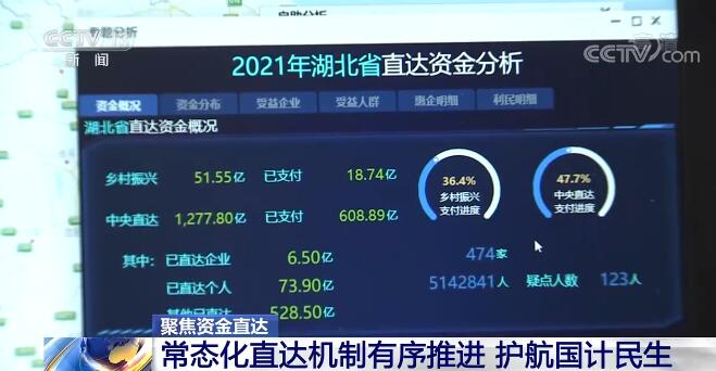 在湖北,截至2021年7月14日,共收到中央財政下達(dá)的2021年中央直達(dá)資金1284.8億元,已分配下達(dá)1232.4億元,形成實際支出885.22億元,支出進(jìn)度69%。