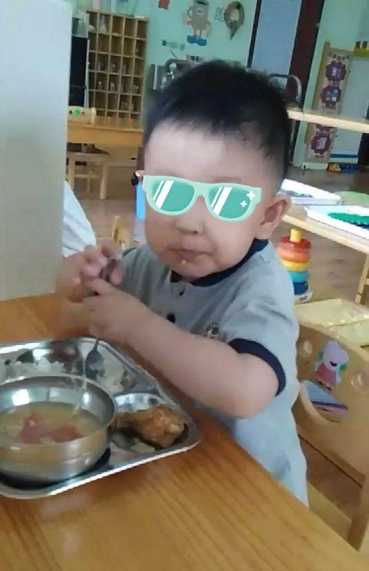 視頻里的小朋友叫鑫鑫(化名),正嚼著一大口米飯和蔬菜,腮幫子撐得鼓鼓囊囊,可愛極了~