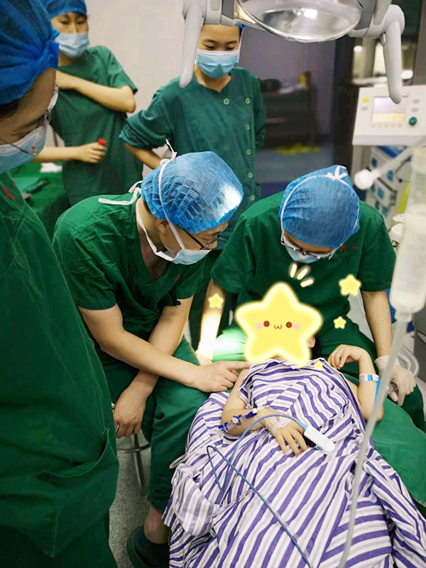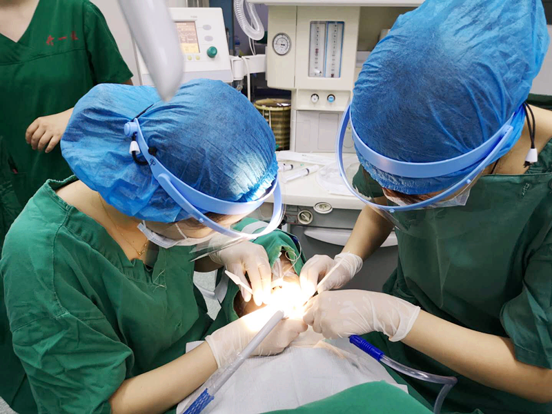 丁彬醫(yī)師和申家麗醫(yī)師正在為小患者進(jìn)行全麻下牙齒調(diào)節(jié)