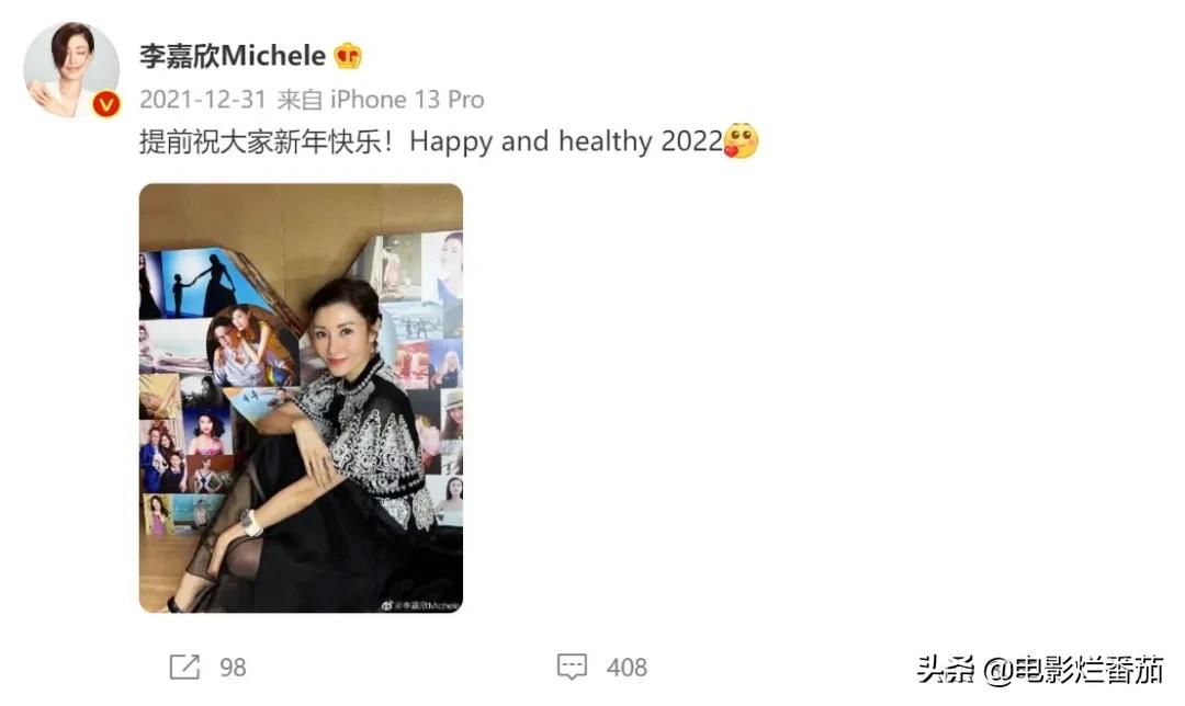 跨年那天,她還曬出自己的美照,提前祝大家新年快樂。