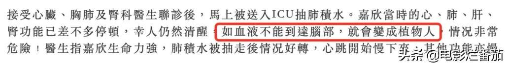 好在當(dāng)時(shí)李嘉欣的意識還比較清醒,否認(rèn)血液無法到達(dá)腦部,她就有可能成為植物人。