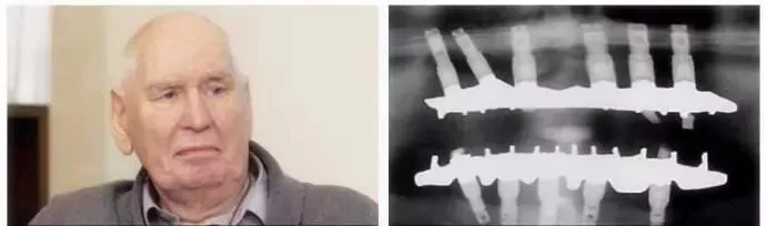 60年代,種植牙的發(fā)明者布倫馬克教授使用11個(gè)種植體來幫助斯蒂約翰遜完成上頜和下頜的重建。 斯蒂約翰遜成為世界上第二個(gè)種牙的患者。