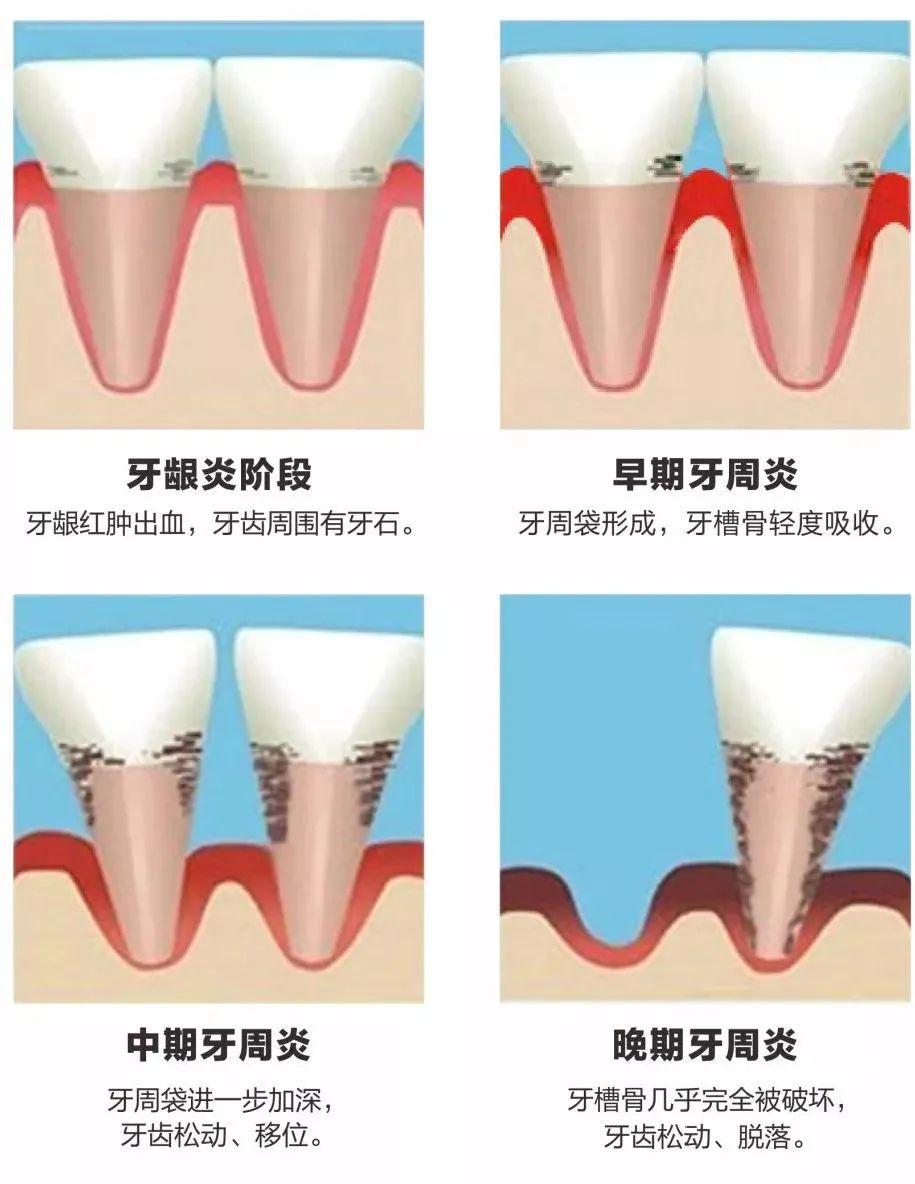 導致牙痛、牙齦出血、牙齒松動、脫落。