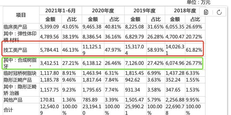 根據(jù)招股說(shuō)明書(shū)顯示,2018年~2021年上半年,滬鴿口腔的合成樹(shù)脂牙的銷量分別為6854.15萬(wàn)顆、8000.14萬(wàn)顆、6470.79萬(wàn)顆、3700.95萬(wàn)顆,實(shí)現(xiàn)銷售收入分別為6074.96萬(wàn)元、7126萬(wàn)元、6138.12萬(wàn)元、3412.51萬(wàn)元。