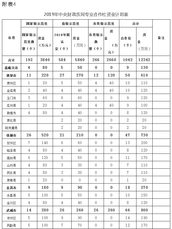 根據(jù)《財(cái)政部關(guān)于提前下達(dá)2019年部分農(nóng)業(yè)轉(zhuǎn)移支付資金預(yù)算的通知》(財(cái)農(nóng)〔2018〕125號(hào))和《甘肅省財(cái)政廳關(guān)于做好省級(jí)部門2019-2021年財(cái)政規(guī)劃和2019年部門預(yù)算編制工作的通知》(甘財(cái)預(yù)〔2018〕65號(hào))要求,經(jīng)研究,現(xiàn)將2019年中央財(cái)政農(nóng)業(yè)生產(chǎn)發(fā)展資金分配計(jì)劃下達(dá)你們,并將有關(guān)事項(xiàng)通知如下:
