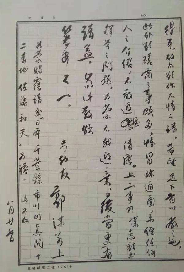 1929年9月初,容庚收到一封寄自日本的信,信中說(shuō):“曩讀王靜安先生《殷虛文字類編》序,得知足下之名。近復(fù)推覽大作《金文編》,用力之勤,究學(xué)之審,成果之卓犖,實(shí)深欽佩。”又說(shuō):“仆因欲探討中國(guó)之古代社會(huì),近亦頗用心于甲骨文字與古金文字之學(xué)?!?“此外欲磋商之事頗多,惟冒昧通函,未經(jīng)任何人之介紹,不敢過(guò)擾清慮。上二事乃仆急欲求解答之問(wèn)題,如蒙不我遐棄,日后當(dāng)更有請(qǐng)益?!毙拍┞淇钍稹拔粗压簟薄N粗?,不相識(shí)也。