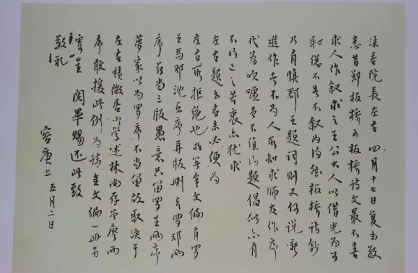 中華人民共和國(guó)成立后,郭沫若官居政務(wù)院副總理兼文教委主任、中科院院長(zhǎng)、全國(guó)人大副委員長(zhǎng)等職,炙手可熱。容庚稱他“仍孜孜不倦地從事學(xué)術(shù)研究,十分關(guān)懷古文字的研究工作”。郭沫若幾次到廣州,都曾與容庚相見,“真正得以歡聚一堂,縱談古今”,但天南地北,他們見面機(jī)會(huì)并不很多,聯(lián)系還是以通信為主。此時(shí)通信,互相間已不再是“沫若先生”、“希白吾兄”這樣親切的稱呼,而是容庚稱郭為“沫若院長(zhǎng)左右”,郭則稱容為“希白同志”。