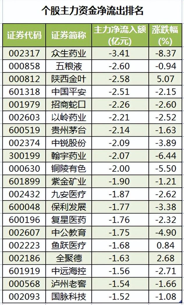此外,2603只個(gè)股被主力資金凈賣(mài)出,其中,37股被主力資金凈賣(mài)出超1億元。