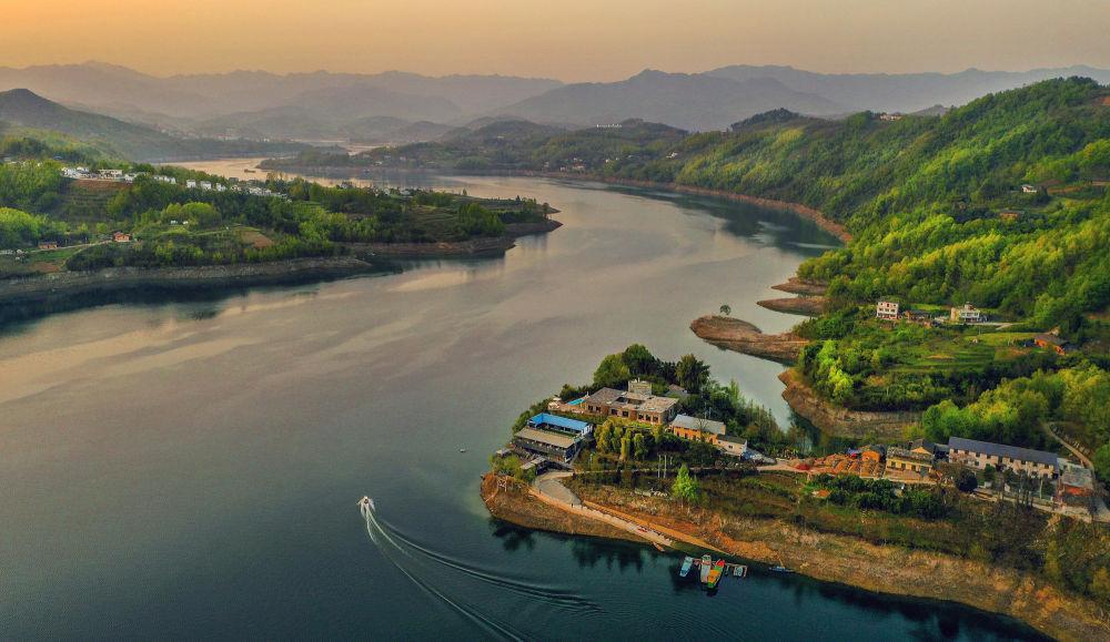↑陜西安康市流水鎮(zhèn)位于南水北調(diào)中線重要水源——漢江中游。近年來(lái),當(dāng)?shù)匾虻刂埔舜罅ν茝V有機(jī)農(nóng)產(chǎn)品的種植,發(fā)展鄉(xiāng)村旅游等低污染產(chǎn)業(yè)。這是流水鎮(zhèn)景色(3月27日攝)。