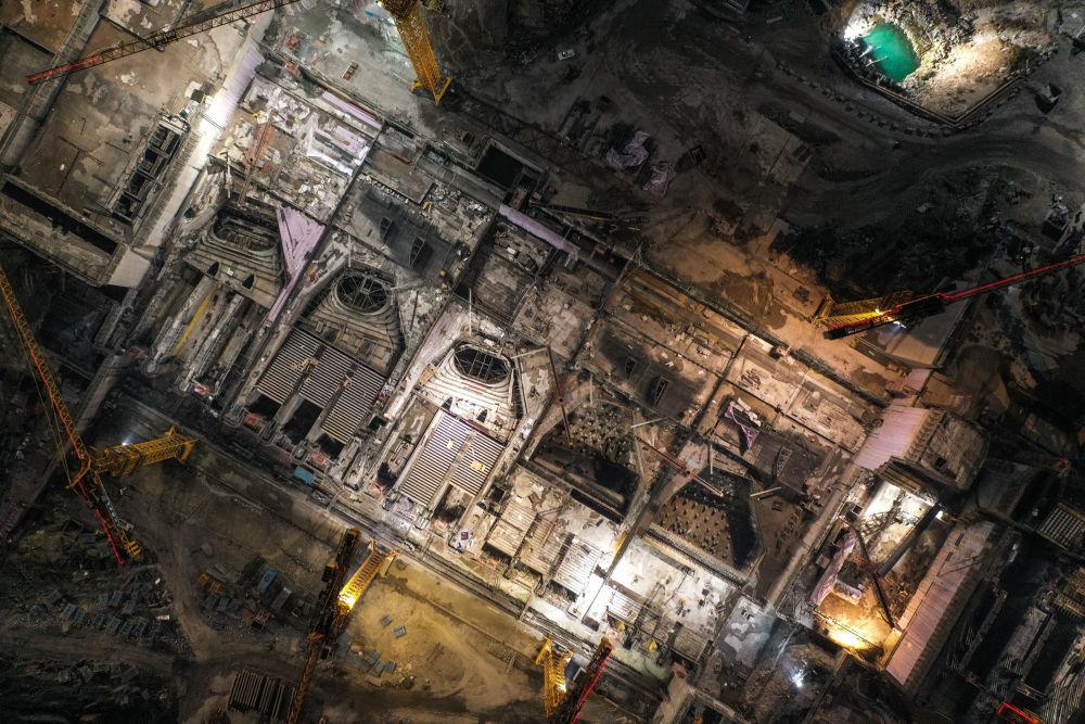↑大藤峽水利樞紐位于廣西桂平市西江流域上的黔江河段,是國(guó)務(wù)院確定的172項(xiàng)節(jié)水供水重大水利工程的標(biāo)志性工程。這是工程夜間建設(shè)現(xiàn)場(chǎng)(無(wú)人機(jī)照片,1月15日攝)。