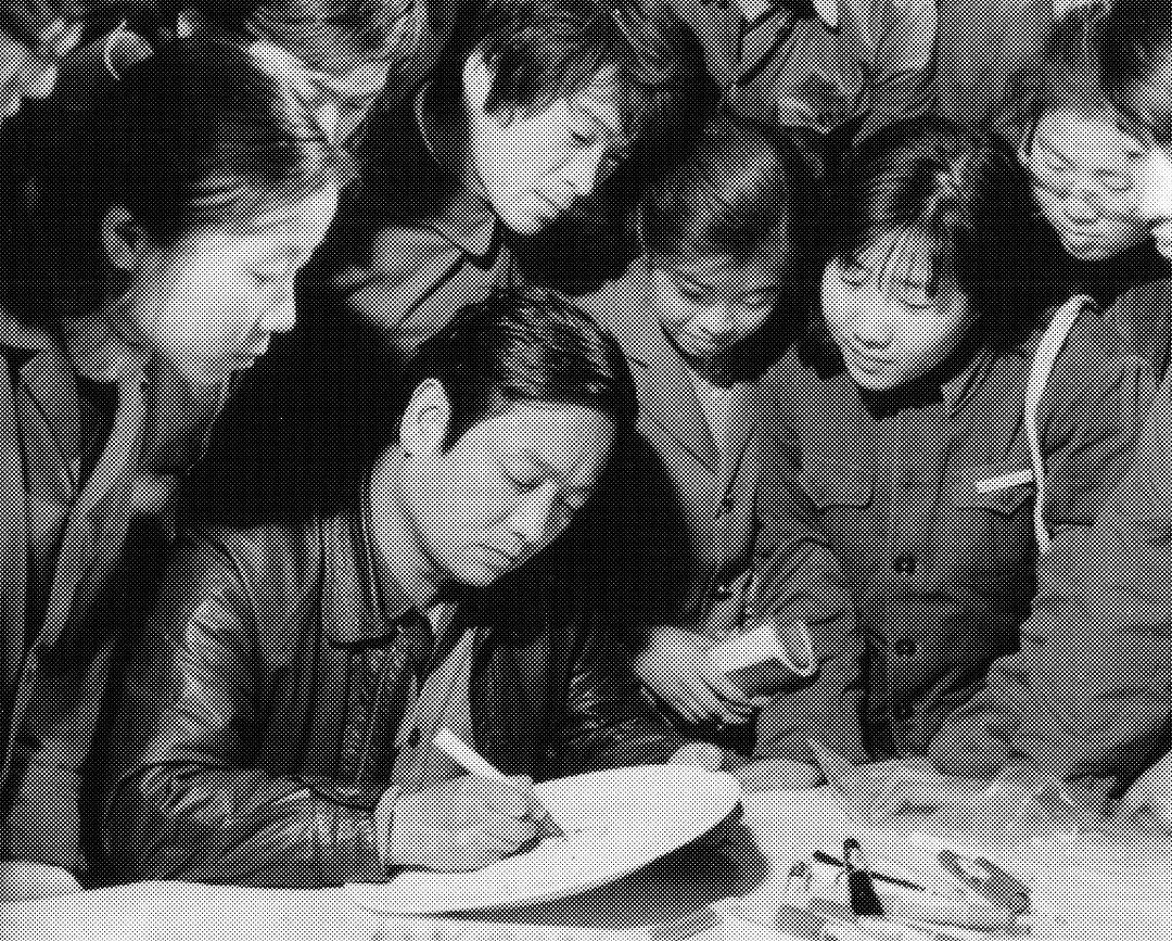 1955年10月,中央美術(shù)學(xué)院工藝美術(shù)系55級(jí)學(xué)生在鷲峰山腰郊游寫生