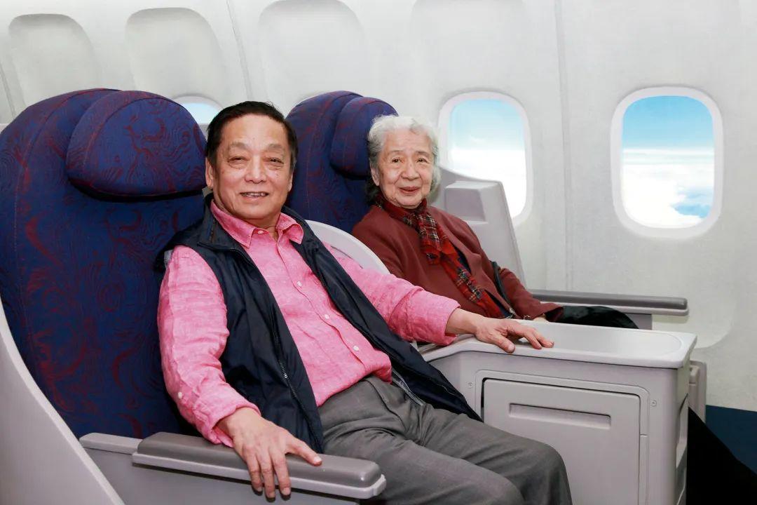 美林與恩師常沙娜在國航內(nèi)飾模擬艙合影