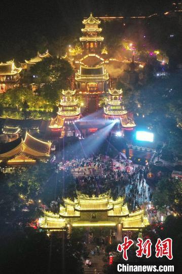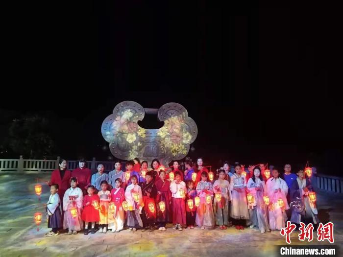 兩岸家庭提燈共游湄洲島媽祖山,結(jié)下情緣。 張玉屏 攝