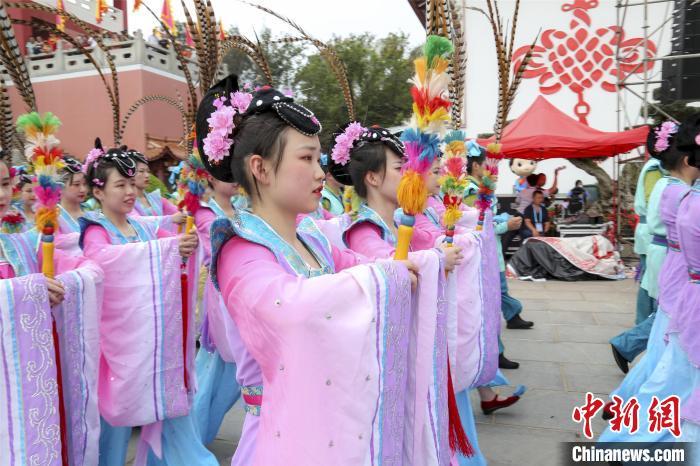 媽祖祭典上,來自莆田學(xué)院的學(xué)生志愿者演員認(rèn)真表演。 林春盛 攝