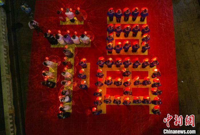 5月4日0時(shí),61名梳著媽祖頭,提著紅燈籠的湄洲女和19名穿著漢服的臺(tái)胞青年一起站成“?!弊郑?jì)屪嬲Q辰及五四青年節(jié)的到來。