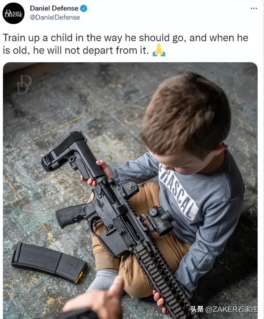 美國軍火商發(fā)布的AR-15系列步槍廣告,用兒童做模特。(資料圖)