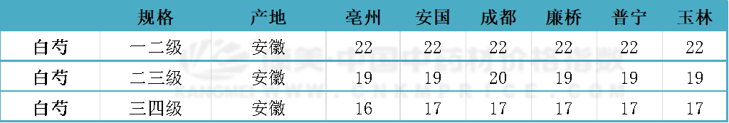 近期各市場白芍產(chǎn)品報價統(tǒng)計(單位:元/千克)