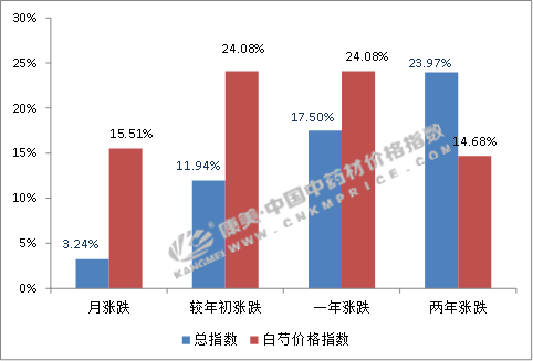 白芍價格指數(shù)與總指數(shù)漲跌對比