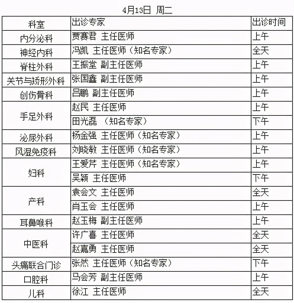 北京中醫(yī)醫(yī)院順義醫(yī)院專家出診安排(4.12—4.18)