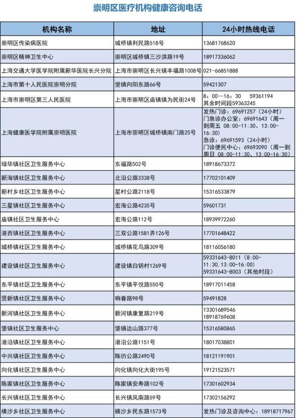 為了切實(shí)保障人民群眾生命和身體健康,滿足市民的衛(wèi)生健康服務(wù)需求,崇明區(qū)各醫(yī)療機(jī)構(gòu)開(kāi)通了24小時(shí)健康服務(wù)咨詢熱線。如有任何身體不適,可按需撥打咨詢熱線問(wèn)診。