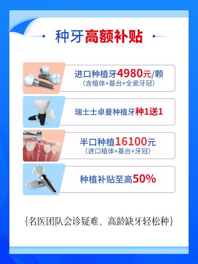為解決缺牙患者看牙難題,暨南大學(xué)穗華口腔醫(yī)院在2022《全民口腔健康計(jì)劃》公益活動(dòng)中,獲得30余家國際知名廠商的聯(lián)袂支持,在七周年院慶期間,特開展“院慶名醫(yī)匯聚 看牙高額補(bǔ)貼”感恩惠民行動(dòng),為缺牙患者提供看牙高額補(bǔ)貼,種牙至高補(bǔ)貼50%!