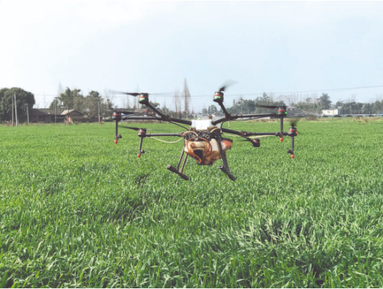 一望無(wú)際的田地上空無(wú)一人,一架無(wú)人機(jī)盤(pán)旋在麥田上空噴藥、施肥……看著田里來(lái)回穿梭的無(wú)人植保機(jī),王伶俐心里踏實(shí)了不少。“今年采用了無(wú)人植保機(jī)等科技化、機(jī)械化設(shè)備,工作率是人工的幾十倍?!?/p>