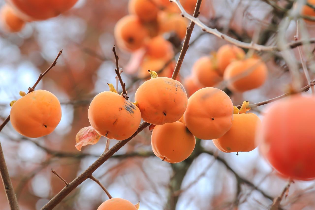4.觀賞柿樹(shù)形優(yōu)美,夏日濃綠,秋葉變紅,丹實(shí)紅艷奪目,是庭院優(yōu)良的觀葉、觀果樹(shù)種。蘇東坡詩(shī):“柿葉滿庭紅顆秋,”描寫(xiě)柿樹(shù)令人神往的景色?!段麝?yáng)雜俎》記載:“柿有七絕:一多壽,二多陰,三無(wú)鳥(niǎo)巢,四無(wú)蟲(chóng)蠢,五霜葉可玩,六嘉實(shí)可噴,七落葉肥大,可以臨書(shū)。”足以證明柿之為世所珍。果可鮮食或加工成柿餅,還可釀酒、制醋;未熟柿果可制柿漆。果蒂和果、根、葉可供藥用。