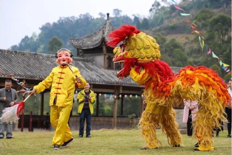 潼南非遺獅舞,表演十分生動形象,將獅子托舉、抱月、打呼、躥步跳等眾多樣式及喜、怒、哀、樂等表情展現(xiàn)得活靈活現(xiàn)。