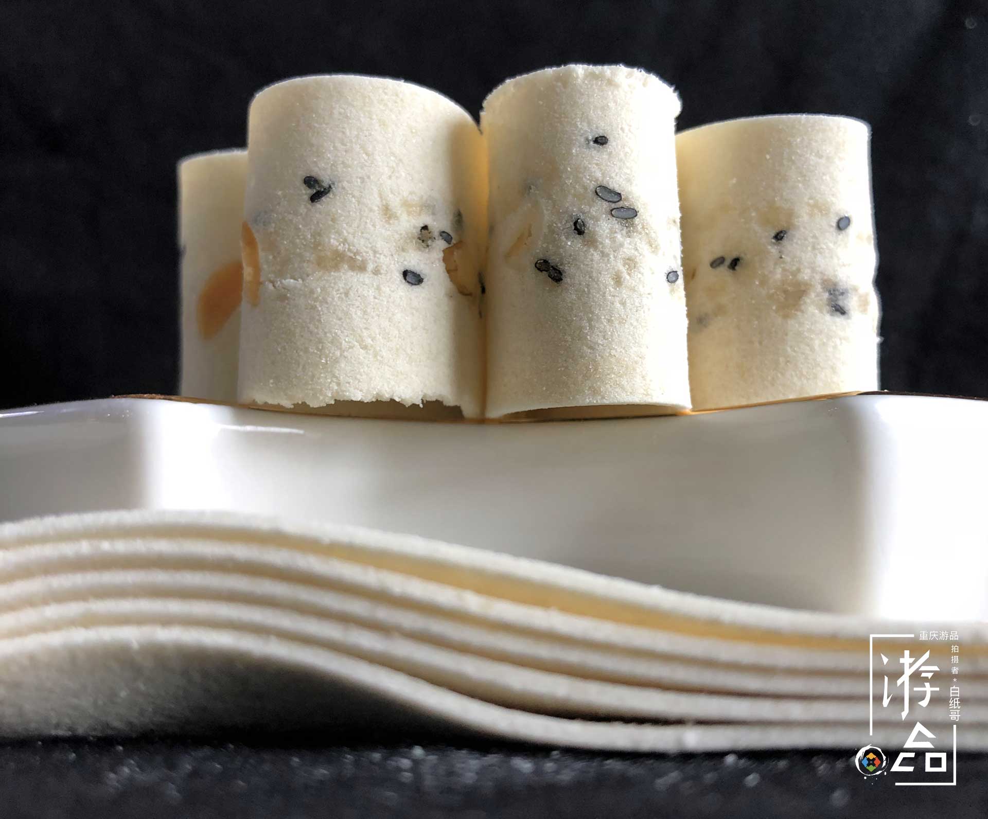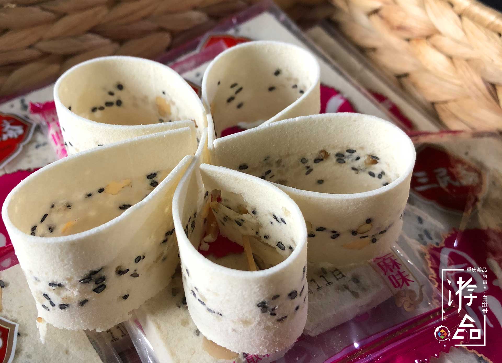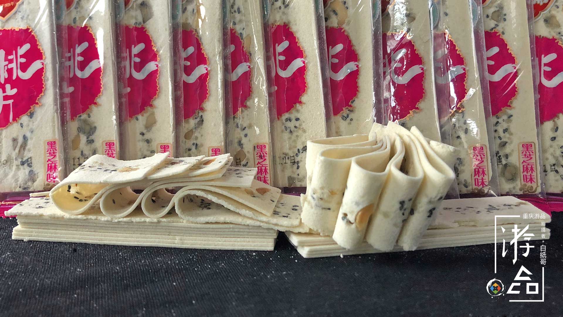 燒白哥表示,他更喜歡厚厚的一層,直接嚼著吃,如果是椒鹽口味,牙齒咬合時的那種爽脆口感更是美妙。當(dāng)然了,如果你覺得不夠味,用合川桃片來蘸醬也是沒什么問題的。