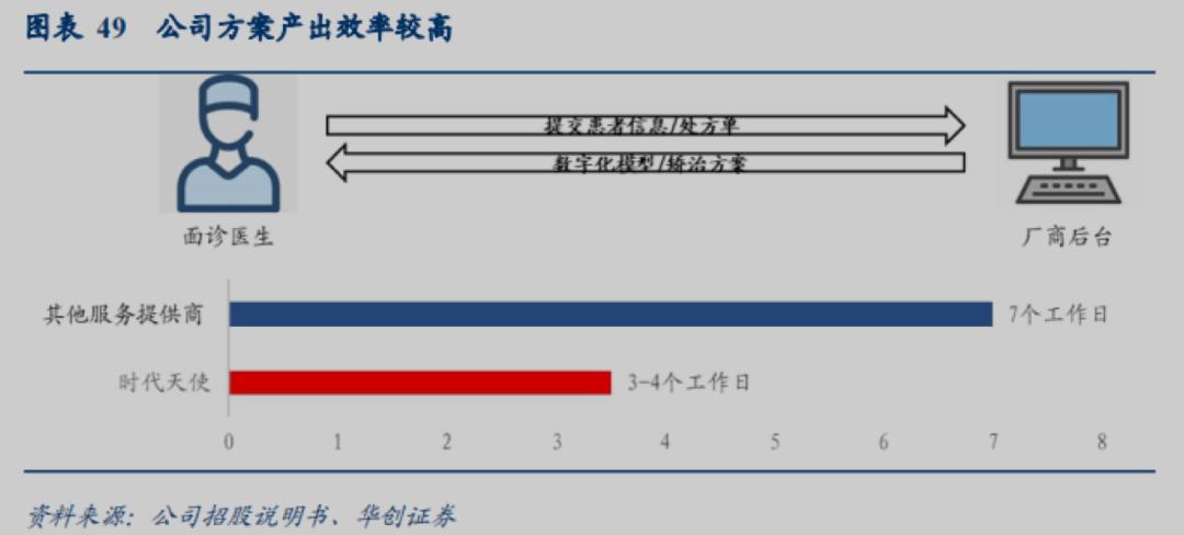 與眼科調(diào)節(jié)更依賴設(shè)備不同,牙科口腔科對醫(yī)生依賴的程度較高,一般來說,口腔醫(yī)院的人員工資占營收比例接近50%,是所有??漆t(yī)院里邊高的。因此,對于整個行業(yè)來說,擴張的主要瓶頸就在于醫(yī)生數(shù)量不足。時代天使的市場份額能后來居上,就是靠打開了醫(yī)生市場。其一,給醫(yī)生做了一套“時代天使隱形矯治系統(tǒng)”,包括數(shù)字化輔助案例評估支持及矯治方案設(shè)計服務(wù),自動定制矯治方案,以及生產(chǎn)隱形矯治器。