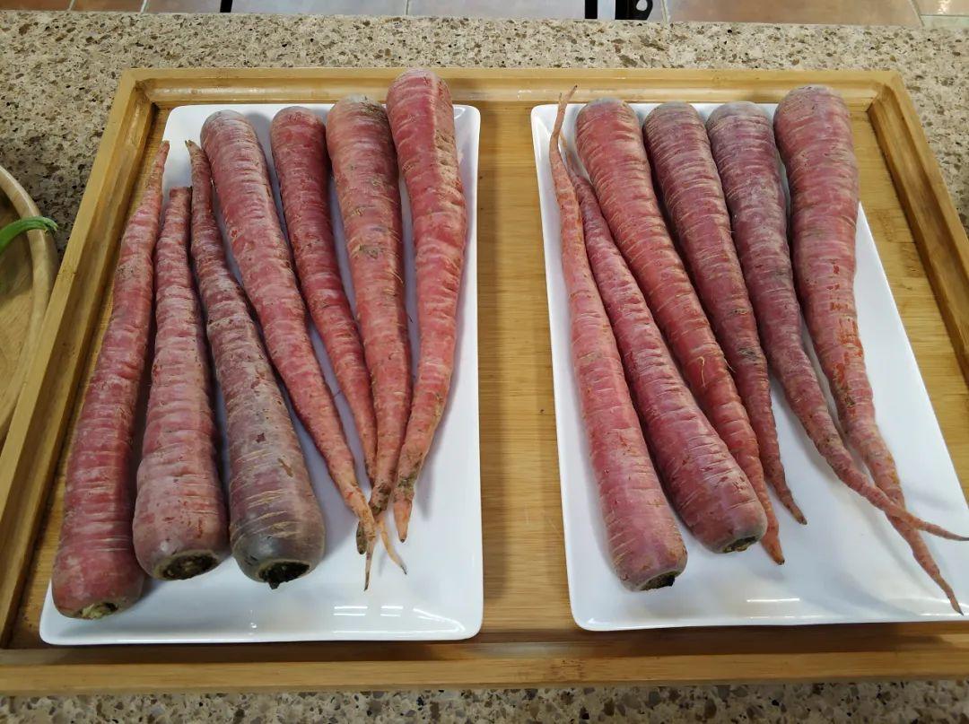 “鞭桿紅”胡蘿卜風(fēng)味濃,味甜,肉質(zhì)脆硬,品質(zhì)好,其胡蘿卜素、花青素含量比普通品種高,是有益于身體健康的保健型蔬菜。生熟食均可,適宜炒食、燉食、蒸食和腌制以及涼拌,烹飪方法得當(dāng)能體現(xiàn)其營(yíng)養(yǎng)價(jià)值和風(fēng)味,豐產(chǎn)性好。適宜秋季露地栽培,耐貯藏,在窖中能貯存到來(lái)年3月份。每年11月-來(lái)年3月供應(yīng)市場(chǎng),深受各階層消費(fèi)者的喜食。品種特性