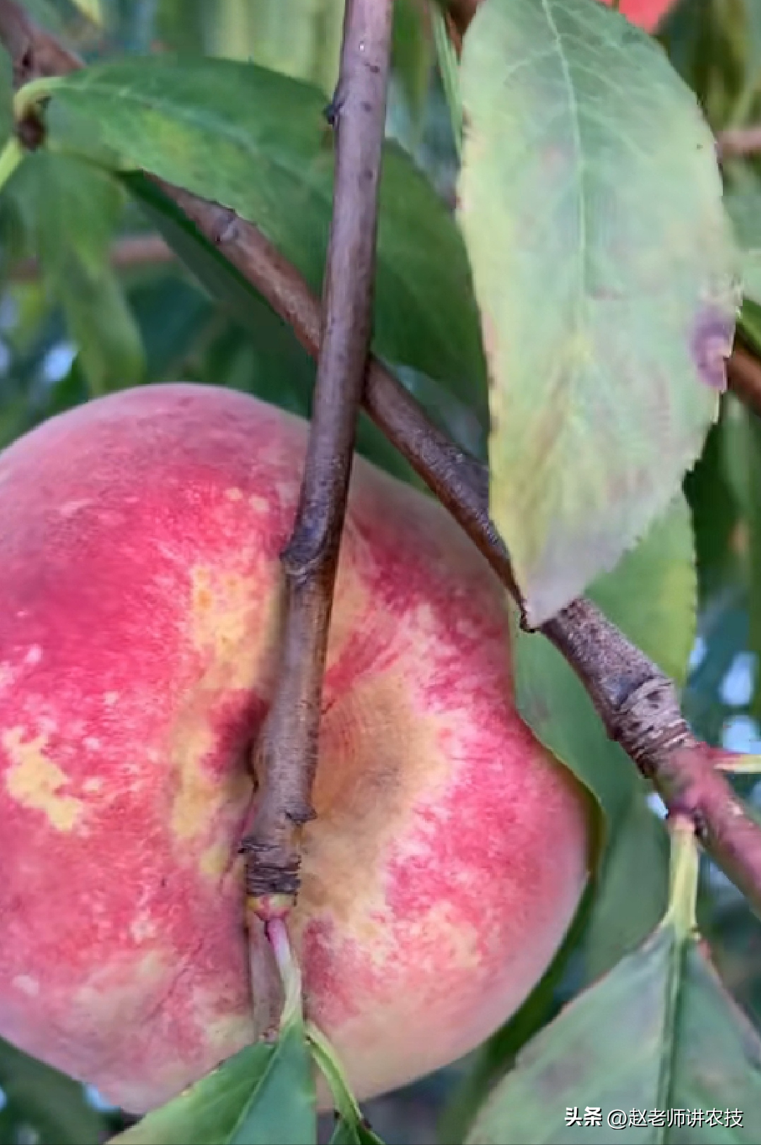 即使不落的果實(shí),由于結(jié)果枝過于粗壯,枝條不會(huì)變形,果實(shí)采摘后會(huì)在桃果底部呈現(xiàn)深深的勒痕影響果實(shí)品質(zhì)。