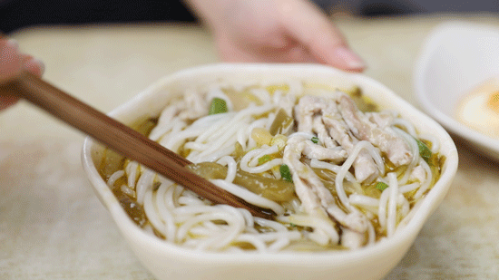 跟酸酸辣辣的雞雜面相比,酸菜肉絲米線就顯得小清新很多,很適合一大早來一碗開開胃。