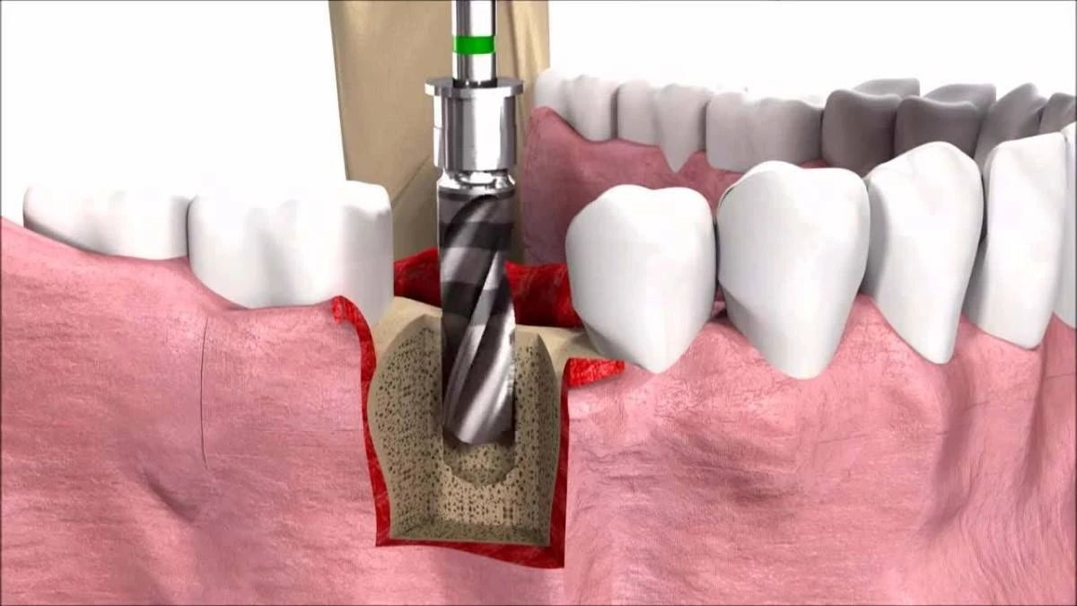 麻醉后,切開缺失牙齒區(qū)域的粘膜骨膜,露出牙槽骨。在缺失牙齒的相應部位的牙槽骨中準備孔,并植入種植體。那些需要植骨的人可以同時植骨,將切口緊密閉合,并在大約10天后將縫線去除。