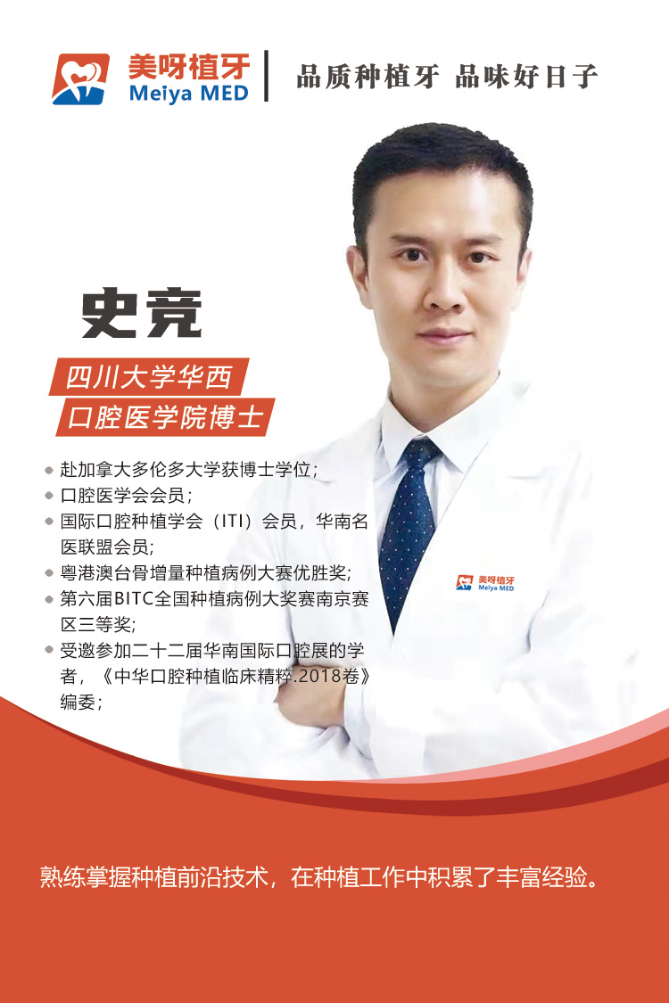 美呀植牙在醫(yī)生的選擇上,特別嚴(yán)苛,每位醫(yī)生均擁有正規(guī)的碩士及以上學(xué)歷,具備5年以上種植臨床經(jīng)驗(yàn),平均3000顆以上臨床經(jīng)驗(yàn),年種植量高于普通全科醫(yī)生。佛山門店的醫(yī)療團(tuán)隊(duì)更是優(yōu)中選優(yōu),技術(shù)實(shí)力雄厚,種植主任史競(jìng)博士領(lǐng)銜的專業(yè)醫(yī)療團(tuán)隊(duì),引進(jìn)國(guó)內(nèi)外先進(jìn)的種植技術(shù),并通過(guò)多年臨床實(shí)踐,積累了豐富的種植經(jīng)驗(yàn)。
