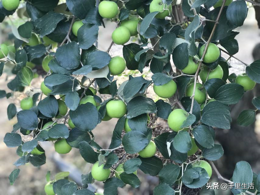 蘋(píng)果棗外觀遠(yuǎn)遠(yuǎn)看和青蘋(píng)果一模一樣。近看,卻比青蘋(píng)果漂亮得多, 外皮光滑亮澤,個(gè)個(gè)都大過(guò)雞蛋, 差點(diǎn)趕上蘋(píng)果,特別稀奇!