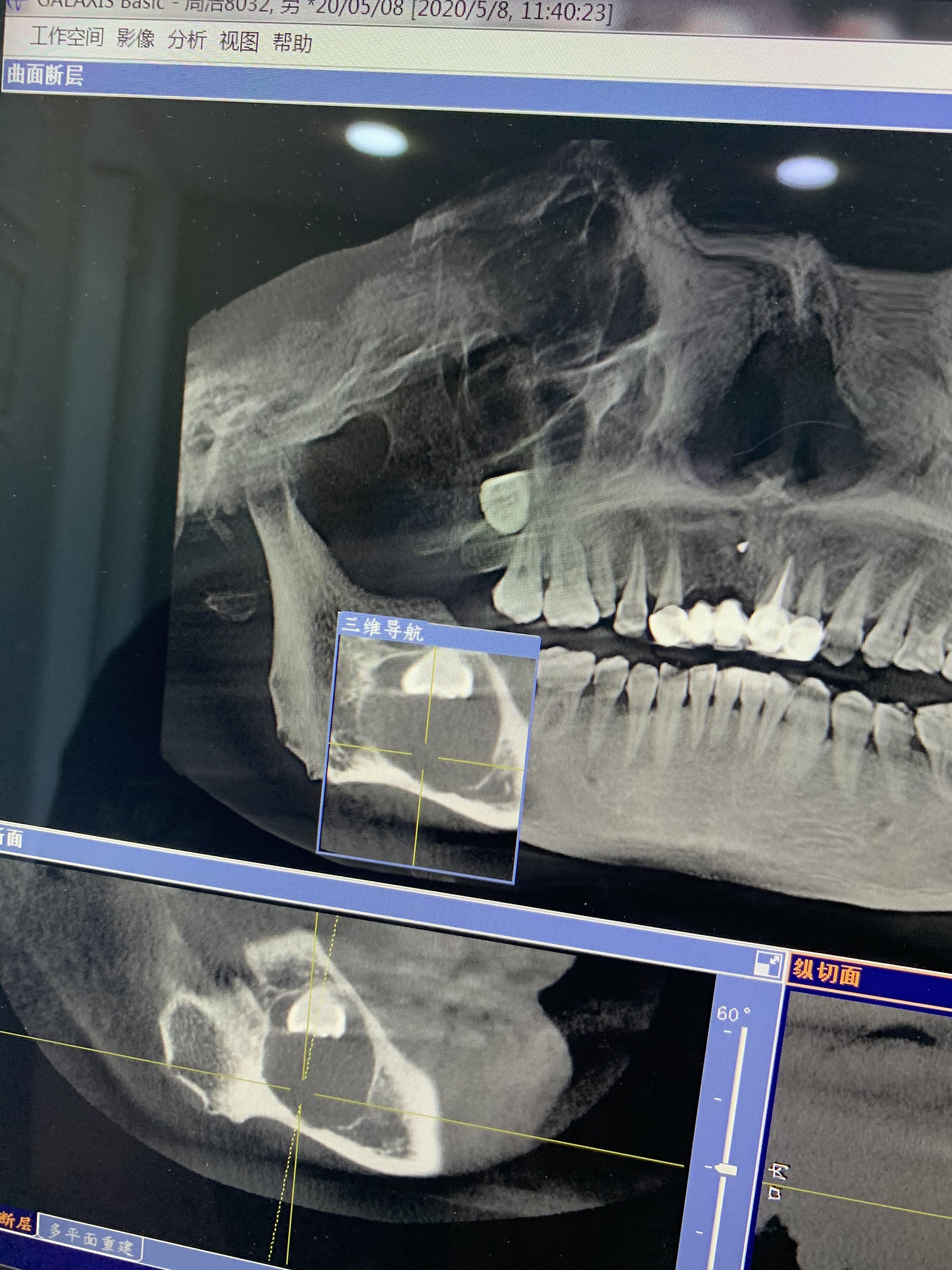 5月8日上午9點(diǎn)半,牙博士醫(yī)生把我叫到房間看片子,打開(kāi)我的片子,他一句“我的天,這應(yīng)該是囊腫,骨頭都要斷了,天啦骨頭都跟紙一樣薄了,不行,我去找院長(zhǎng)來(lái)”,他出去了,我一個(gè)人坐在那楞住了,這不是智齒嗎?什么囊腫?骨頭斷了?我的天,我瞬間感覺(jué)我是不是要廢掉了~