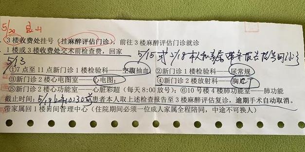 手術(shù)時(shí)間確認(rèn)后,王醫(yī)生給我開(kāi)了一張住院申請(qǐng)單,送到1樓日間手術(shù)管理中心,然后前往3樓收費(fèi)掛號(hào)麻醉評(píng)估,具體流程和檢查事項(xiàng)可以查看下面圖片信息: