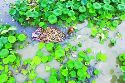 浙江省湖州市吳興區(qū)東林鎮(zhèn)泉心村種植戶在荷塘里采收蓮藕。新華社發(fā)